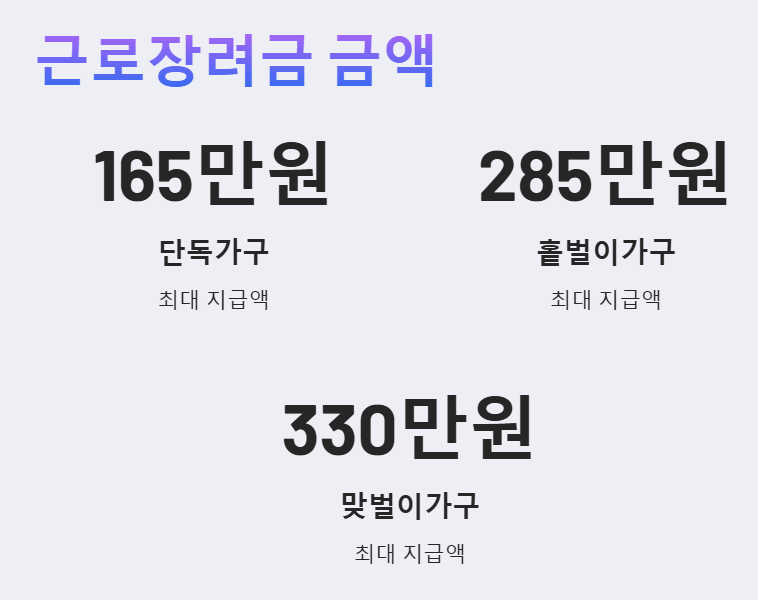부부의 총급여액 등을 합산한 금액을 기준으로 근로장려금과 자녀장려금을 차등 지원하며, 아래와 같이 지원한다고 합니다.