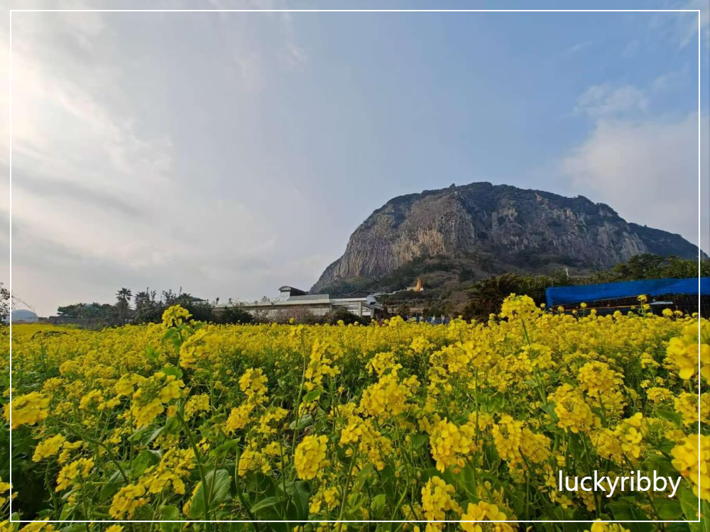 주요 볼거리: 노란 유채꽃 물결, 산방산과 용머리해안 배경의 유채꽃밭