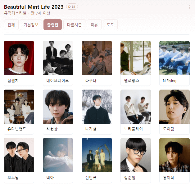 최종 라인업에 합류한 아티스트 중 제대 하루 만에 팬들에게 페스티벌에 출연하는 소식을 알리게 되었다고 하는데요, 2019년 데이식의 뷰민라 출연으로 인한 인연에서 비롯되었다고 해요. DAY6(데이식스)의 Young K(영케이)가 어떤 무대를 보여 줄지 저도 너무 기대가 되는 것 같아요. 또 하이키(H1-KEY)는 뷰민라를 통해 처음으로 페스티벌 무대에 오르는데, 히트곡 '건물 사이에 피어난 장미'의 작사자인 영케이와 가수 하이키가 같이 참가한다고 해요. 올림픽공원에서 진행되는 아티스트와 다양한 이벤트가 준비되어 있으니 5월 가족들과 뷰티플 민트 라이프 2023 페스티벌에 참가하여 신나는 하루를 보내보는 것은 어떨까요?