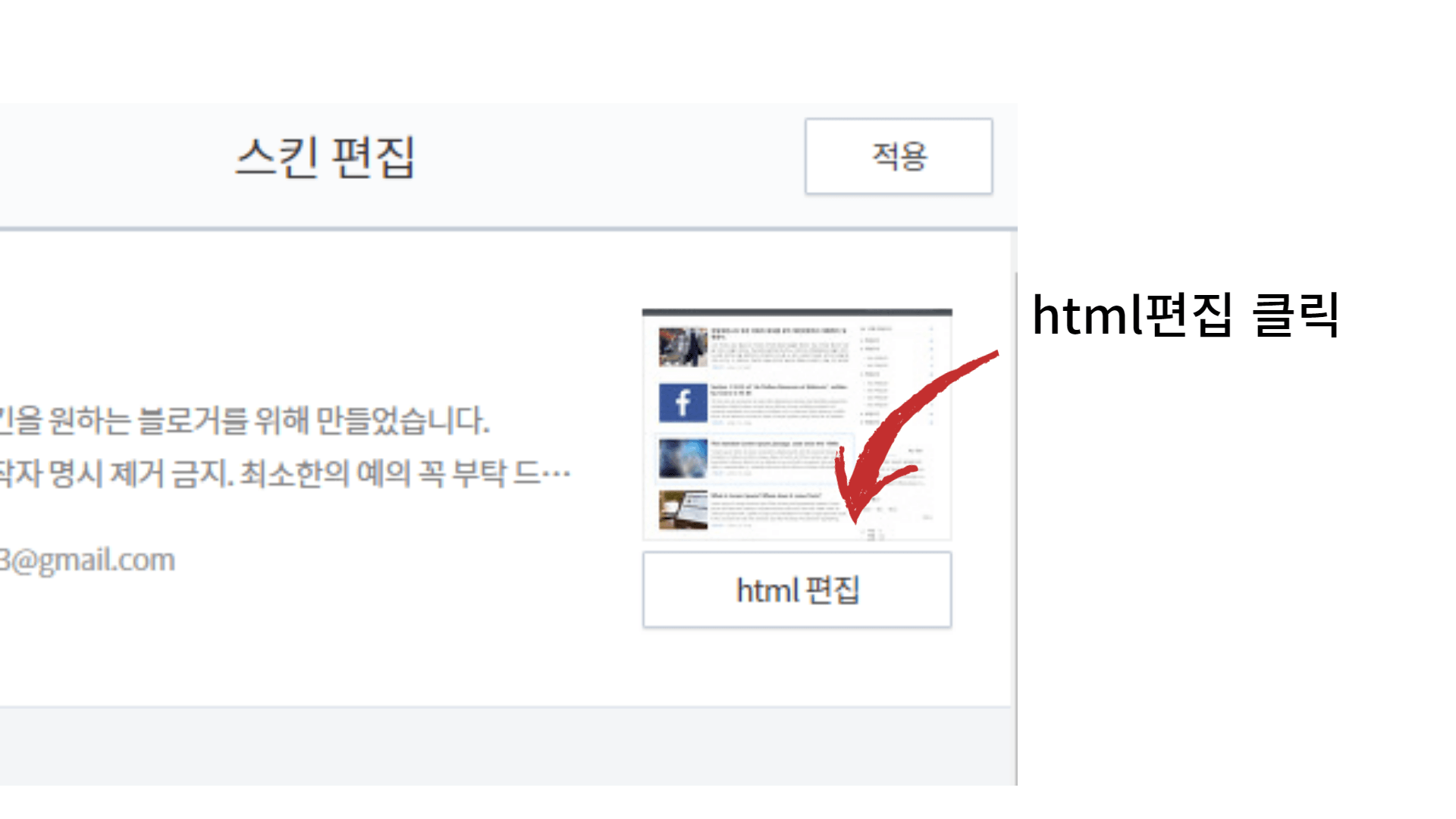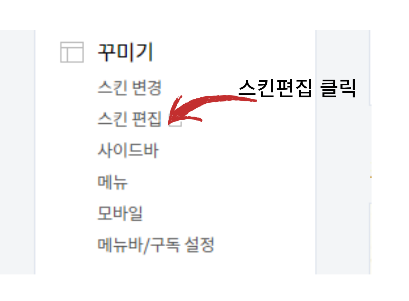 이제 본인의 티스토리로 이동해주세요. 로그인해서 설정으로 들어가 주세요. 그리고 왼쪽 하단의 꾸미기에서 스킨편집을 찾아주세요. 스킨편집을 클릭 → html 편집 버튼을 클릭해주세요.