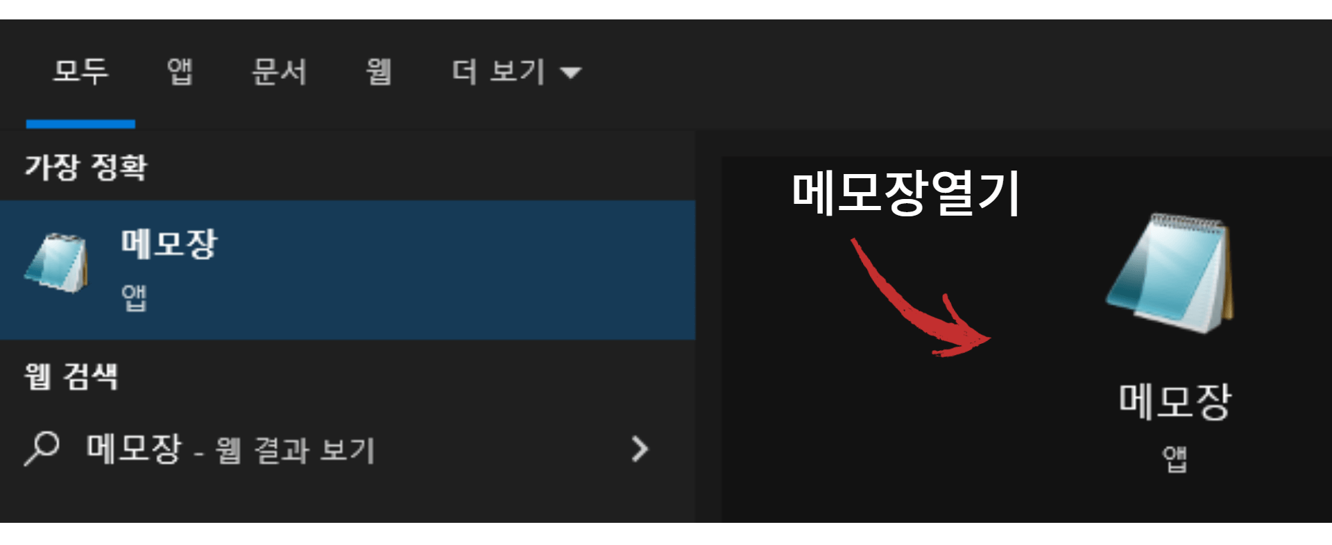 그러면 아래와 같은 메모장이 나옵니다. 메모장을 열어주세요.