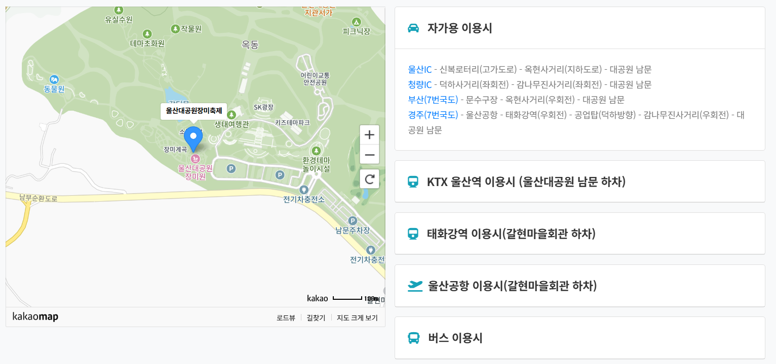 ✔ 주차/교통: 주말 혼잡 대비, 대중교통이 안전한 선택입니다. 자가용은 남문, 동문 주차장 추천.