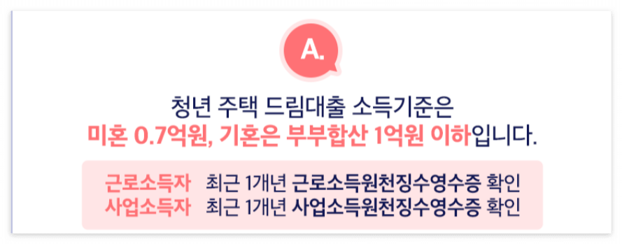 ☞ 소득기준은 미혼 7천만 원, 기혼의 경우 부부합산 1억 원 이하입니다.