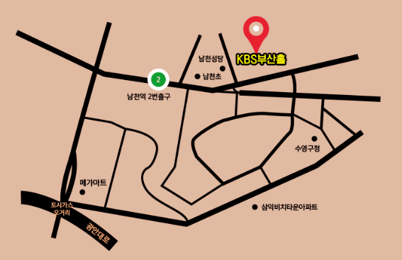 - 지하철: 2호선 남천역 하차(2번출구 도보 5분)