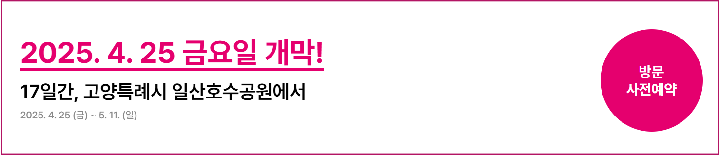 봄의 절정, 2025 고양국제꽃박람회가 4월 25일부터 5월 11일까지 일산호수공원에서 화려하게 펼쳐집니다.